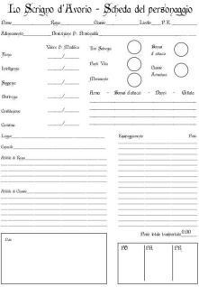 Una scheda del personaggio per Lo Scrigno d'Avorio¸ in pdf.