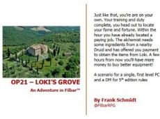 Starting an adventuring career can be exciting¸ but it can also be deadly. As you have completed your training¸ you are offered an "easy" job from an alchemist. Several ingredients are required for a special project and the only source is a Druid a few miles away. Get the items¸ return them¸ and get paid a whopping 20gp...not a bad start for a newbie! This adventure setting was designed for 5th Edition AD&D for the Filbar Campaign¸ for a two 2nd level character. This one page offering was designed as a two PCs and DM. Don't forget to follow us on Twitter @FilbarRPG for news and offers!