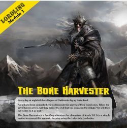 The Bone Harvester is a Lordling adventure for characters of levels 1-3. It is a simple matter to convert this scenario for play using the Labyrinth Lord rules.
