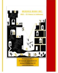 The scenario was designed for a quartet of first level PCs. This offering was a fantastic time for the Murder Hobo Inc. podcast show on Twitch. The series features a rotating cast for a two hour game every week. They also offer a "talk show" format every Tuesday. We urge you to check us out: twitch.com/mhoboinc and don't forget to follow!