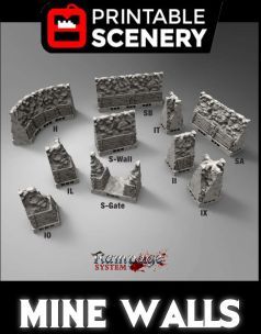 The mine wall system is based on the S tile. This allows for 360 connection using OpenLOCK clips. These are designed to be used in used in conjunction with the mine floors however they are compatible with all rampage floors.