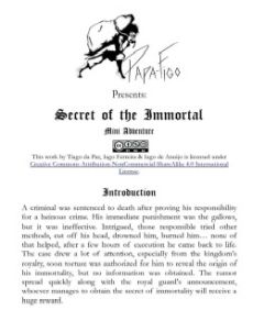 A criminal was sentenced to death after proving his responsibility for a heinous crime. His immediate punishment was the gallows¸ but it was ineffective. Intrigued¸ those responsible tried other methods¸ cut off his head¸ drowned him¸ burned him... none of that helped¸ after a few hours of execution he came back to life. The case drew a lot of attention¸ especially from the kingdom's royalty¸ soon torture was authorized for him to reveal the origin of his immortality¸ but no information was obtained. The rumor spread quickly along with the royal guard's announcement¸ whoever manages to obtain the secret of immortality will receive a huge reward.