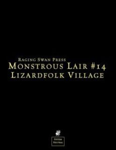 Monstrous Lair #14: Lizardfolk Village provides you-the busy¸ time-crunched-with the details to effortlessly bring to life the lizardfolk villages in your campaign. Are you a busy GM? Does session prep take too long? Do you never have time to work on the cool little details that can bring your adventures¸ dungeons and campaign to life? This short¸ focused compilation gives you¸ the time-crunched GM¸ the tools to effortlessly add verisimilitude and detail to your dungeons. Use the material herein either before or during play and bask in your players' adulation.