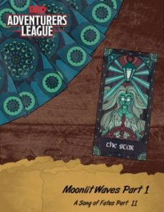 Moonlit Waves¸ Part 1 Part 11 of A Song of Fates The havoc caused by the emergence of the Tarot Cards is not limited just to the lands of Thentia. Many trading vessels lie at the bottom of the harbor¸ sunk by unknown causes. Today¸ another attempt is made to raise one of those sunken ships. A 2-Hour Adventure for 5 th - 10 th Level Characters with optional content to enable 4-hour play. Other adventures in the TAROT series: ** Tarot Tier 1 Adventure Bundle! ** TAROT01-01 Awakening of Fates TAROT01-03 A Martyred Heart TAROT01-04 Tangled Woods TAROT01-05 The Lost Apprentice TAROT01-06 Lies in the Moonlight TAROT01-07 The Seat of the Ruler *NEW* TAROTS1-01 A Long Night Tier 2: TAROT02-01 A Sunk Cost TAROT02-02 Guardian's Scourge TAROT02-03 To Boldly Go TAROT02-04 Moonlit Waves¸ Part 1 TAROT02-05 Hollow Hopes TAROT02-06 Waiting on Release TAROT02-07 Moonlit Waves Part 2 TAROT02-08 Winding Road to Freedom TAROT02-09 The Thentia Job TAROT02-10 Premiered! Waiting on DMs Guild Release