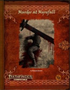 Murder at Myrefall is an adventure for the Pathfinder Roleplaying Game designed for four 1st level characters. The adventure can be played in most fantasy settings. The primary prerequisite for the adventure is that the player characters must travel through an area containing a small village (Myrefall¸ see Appendix 1) approximately a half day's journey from a larger city (Far Wall)¸ which has a strict curfew that makes entering the city all but impossible past nightfall. Murder at Myrefall can also serve as an introduction to the world of Terrial¸ a dark epic fantasy setting developed by Vorlen Publishing. In Terrial¸ several centuries ago an alliance of evil and neutral deities made a sudden and decisive strike against their good aligned counterparts. Although the good deities mounted a desperate defense¸ they were undermined by surprising betrayals and overwhelmed by the dark alliance's combined power. This war changed the face and the fate of the world. Please see Appendix 2 if you are interested in more information about playing Murder at Myrefall in the Terrial campaign setting.