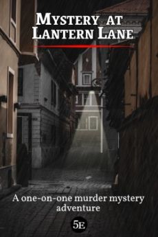 Mystery at Lantern Lane takes place in a small area near a large city or town. It's designed to be run by one dm for one player with a 3rd-to-5th level character¸ and can be finished in about 2 to 4 hours.