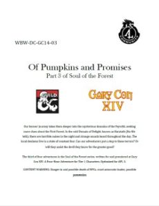 The third of four adventures in the Soul of the Forest series¸ written for and premiered at Gary Con XIV. A Four-Hour Adventure for Tier 1 Characters. Optimized for APL 3.
