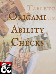 Do you remember that time that I rolled a 20? It was amazing. That kind of luck only happens... like 1/20 of the time." Dice are great. Everybody loves rolling their beautiful RPG dice. But¸ this is not Yahtzee: dice don't play RPGs¸ people do. A player might need to roll a saving throw to see if they can avoid a fireball¸ and then everyone moves right along to the next step of the fight. But¸ other ability checks might be a lot more fun to do with a puzzle. Origami ability checks are paper-folding puzzles. Each starts off as a one-sided 8x8 grid¸ and the player needs to fold it into a two-sided 4x4 grid with a picture showing on the front and orange cells showing on the back. They range in difficulty¸ take a few minutes to solve¸ and are very satisfying. Most players have never seen anything like this¸ so there can be a big "wow" factor. As with all of our products¸ you can customize these puzzles with your own art or text that fits your campaign. For example¸ one key plot point in your adventure might require players to find a hidden entrance to a castle. Instead of glossing over it with one roll that takes 3 seconds¸ stretch out that challenge with a fun puzzle that takes 3 minutes and that players will remember for 3 years. Details Each puzzle is a one-sided 8x8 grid that players must fold into a two-sided 4x4 grid with the picture assembled on the front and all orange cells on the back. Ten puzzles included: one example puzzle¸ plus three sets of artwork with easy¸ medium¸ and hard puzzles in each set. An answer sheet is also provided. Very easy to print and cut out. If you are playing remotely¸ the DM can select a sheet for players to print and solve at home. Source files are included so you can change the art to match your campaign or group. Game Night Advantages Challenge players with a fun puzzle rather than settling everything with dice rolls. DMs can plan to use specific puzzles for specific plot points. Go further by customizing the puzzle with art or words that fit your adventure. For a easy customization¸ print and solve a puzzle yourself¸ then write a clue across the back and unfold. Or¸ just print them all¸ shove them in your bag¸ and look super-prepared when you whip one out and ad-lib how it represents the situation at hand. Puzzles can replace one ability check for one player as a solo challenge. Or¸ they can be used with all players collaboratively or competitively as a race or contest. Players will want to keep the solved puzzles as trophies to remember their in-game accomplishments¸ and show them off to others. See more product photos on TabletopUnglued.com.