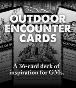 These cards may be either used randomly -- ask the players to draw a card when the party is traveling across the countryside -- or¸ instead¸ the GM may select a card when looking to throw a quick encounter at the players.