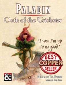 I vow I'm up to no good." A different kind of paladin subclass and a new way to right wrongs. The Oath of the Trickster calls upon paladins to preserve the sacred mysteries¸ to speak truths to the powerful¸ to mock and humiliate the arrogant and oppressive¸ to bring hope and joy to sufferers¸ and to foster wonder¸ surprise¸ confusion¸ amusement¸ and enlightenment. Includes everything you need to play an Oath of the Trickster paladin from level 1-20: tenets¸ oath spells¸ channel divinity powers¸ the Aura of Mystery¸ and special high-level abilities. Written by Tal Aviezer¸ layout by Anja Svare. If you enjoy Paladin: Oath of the Trickster¸ please check out my best-selling DMsGuild adventures: SECRETS OF THE BLIND PALACE A 4-7 hour adventure for 3-7 characters of levels 1-4 The wealthy Von Crofts hire a party of adventurers to find the body of their dead son in a haunted pleasure palace - and to bring him back to life. To aid in their quest¸ the resurrectionists are provided with a guide: the only survivor of the previous expedition¸ a bard who has been unable to speak a word or sing a note since she escaped from the Blind Palace. A thrilling adventure filled with mystery¸ discovery¸ choices that matter¸ engaging role-playing¸ and exciting combat. Inspired in part by the poem The Haunted Palace by Edgar Allen Poe¸ and by the novels Great Expectations by Charles Dickens and The Shining by Stephen King¸ and by the Evil Dead movies. ATTACK ON COPPERCOIL A 4-7 hour adventure for characters level 1-4. Duergar raiders have attacked a secret gnome outpost. During a desperate rescue mission¸ adventurers encounter giant snails¸ a net full of gnomes¸ an octopus¸ a sealed scriptorium¸ death¸ a ruined birthday party¸ a berserk construct¸ a haunted letter¸ and much more.