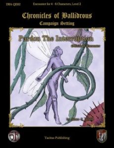 Pardon the Interruption is a Q-Encounter¸ or Quick-Encounter¸ that can be run for a group of four to six players with 2nd-level characters or higher. This encounter would be considered a 'medium' to 'hard' encounter.