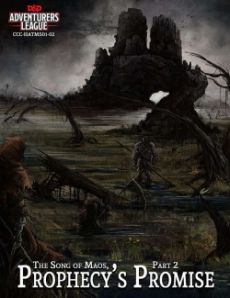 Will Brightsong has been kidnapped¸ and the Moonsea is spilling into the cities of the region. The adventurers must travel into the heart of Thar to rescue the Brightsong heir¸ and return him to the Isle of Maos before catastrophe strikes! A 4-hour adventure for 5th-10th level characters Prophecy's Promise premiered at Holiday Around the Moonsea in November 2017. It is the second part of the Song of Maos trilogy. Maps for encounters and Adventurers League magic item certifications are included. Find the rest of the story here! Threatening Tides Destiny Defied