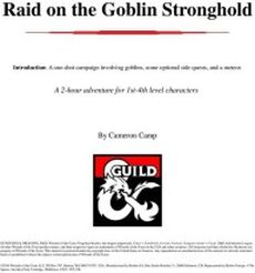 Raid on the Goblin Stronghold Dungeon Masters Guild Cameron Camp Universell Abenteuer 🔗 Abenteuer PDF¸ Original electronic EnglischEnglish 2018 Als PDF erhältlich bei DrivethruRPGAvailable as PDF at DrivethruRPG Unterstütze Deinen lokalen Spieleladen vor Ort!Support your local dealer 🔗 DescriptionDescription A meteor crashed near a goblin stronghold and you need to retrieve it. A simple one-shot campiagn with some optional sidequests¸ for partys level 1-4. This includes a magical item.