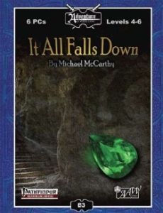 REALM WORKS compatible* A Pathfinder compatible adventure for four to six PCs of level 6 The Saatman emerald is an artifact¸ a relic of a long lost civilization that has been safely hidden in the Iroth family vault for years. But now¸ it¸ along with thousands of other precious gems have been stolen! A secretive group of duergar¸ long since driven insane from a curse¸ have broken into the family home and stolen away with the emerald¸ which must be recovered before it is lost in the miles of tunnels that lead ever deeper into the world. But getting the relic back is the easy part! The players will soon find themselves running for their lives¸ and lost in an underground catacomb as the duergar are more than happy to collapse the tunnels behind themselves. Are the players lost forever¸ or perhaps¸ are there other treasures to recover on the long road back to the world above? Also included in "It All Falls Down": The Thousand-Hammer¸ a wall-toppling magic item bound to pack a punch A new monster¸ the Chikfari¸ along with several variants the PCs can hope to catch and train as mounts Details on the Iroth family¸ complete with treachery brewing Maps by three-time ENnie Award-winning cartographer Todd Gamble HERO LAB files AVAILABLE for everything contained within the adventure *DISCLAIMER: These files were designed for the original version of Realm Works and are sold AS-IS. Since LWD has abandoned the Realm Works software we cannot guarantee compatibility of these files with your version of the software.