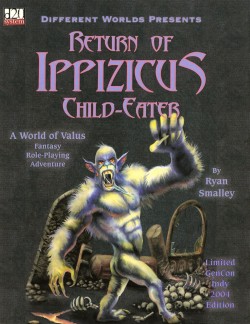 Returns of Ippizicus Child-Eater Different Worlds Ryan Smalley Universell Abenteuer 🔗 Abenteuer Hardcover 96 Seiten EnglischEnglish 2004 Unterstütze Deinen lokalen Spieleladen vor Ort!Support your local dealer 🔗