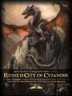 AX4: Ruined City of Cyfandir (ROC) is a ready-to-play adventure scenario presented for use with the Adventurer Conqueror King System™ (ACKS) and other d20-based fantasy role-playing games. Explore the vast ruined city of Cyfandir and discover the secrets of the fallen kingdom of the elves.