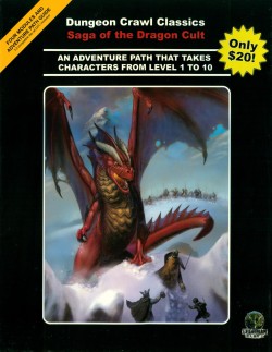 Before there was Áereth¸ the Known Realms¸ or the gazetteer that hints to the myriad of adventures set therein¸ there was Tsathzar Rho¸ the Witch Queen¸ Nockmort the Mad Treant¸ and Pyraxus the Red Dragon. Fearsome villains all¸ the four reigned with terror and violence across the Known Realms¸ and a many a troupe of aspiring heroes fell before their evil machinations. Now all four classic villains can be found together in this single¸ epic adventure path. Saga of the Dragon Cult is a collection of four classic DCC adventures that takes PCs from 1st level all the way to 10th level and beyond. Beginning play as mere apprentices¸ woodsmen¸ petty thieves¸ and sellswords¸ the PCs grow to become mighty legends¸ of whom tales of heroism are recounted across the North. By the final chapter¸ the fate of civilization rests in the hands of the PCs¸ as they chase a fearsome red dragon back to its lair.