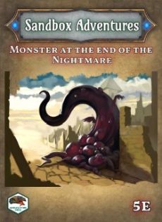 Shade Haven is a newly founded desert frontier town¸ home to thrill seekers¸ fortune finders¸ and a seasonal influx of hunters who seek valuable jackalope antlers. However¸ an ancient and nearly omniscient evil lurks beneath the desert sands¸ waiting to devour everything. Only the party can thwart the evil and save the town. Monster at the End of the Nightmare is a horror-themed desert adventure for a 3rd level party in the Fifth Edition of the world's greatest roleplaying game featuring art from Pawel Parol¸ Dean Spencer¸ Rob Greyvenstein¸ and Shane Collins. This module can be used to run and adventure or mined to create a complex and fully detailed town loaded with complex NPCs who all have their own secrets and plot hooks.