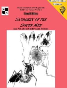 Looking for some old school style adventuring? You know - The kind inside dungeons¸ where the exploration was still part of the fun? Looking to find challenge in the monster enemies¸ the traps¸ and how it all fits together into a mission that makes some sense? Looking for ideas and inspiration that will get you excited about being a game master again? Yep¸ you found it! Savagery of the Spider Men was the second adventure module Board Enterprises published back in the early days. Out of print for years¸ we are bringing it back. But this is only the freebie version for those of you who might play in that adventure module. All the exposition is here - everything your characters would likely know about the setting¸ but none of the spoilers that might ruin the adventure for you. So¸ the adventure itself isn't in this one - It's in the Game Masters' edition. This mission has been revamped and now contains the enemies in both Legend Quest and die-20 stats. We know that not all of you play by our rules¸ so we've included the stat blocks and encounter descriptions that will allow you to run this mission in our rules¸ die-20 rules¸ or your home grown. After all¸ quests are about a whole lot more than just how many points it takes to kill the monsters - there needs to be some story¸ a setting¸ and most of all strategies. But this isn't just an adventure setting! We've put it inside one of our Small Bites editions. That means you'll get the mission¸ but also world building ideas¸ the setting outside the dungeon¸ story ideas¸ new magic items¸ and all the rest! Is there more? Pick this up to see what all the noise is about! When you see how much you like it¸ either you or your GM can grab the Game Masters' edition and run the mission for your party. How often do you get to preview an adventure to see if you like it? This supplement contains 17 pages of content¸ compared to the full (GM) version which contains 67 pages. To be as upfront as we can¸ we feel the GM's edition only contains 57 pages of content because much of the rest is maps¸ sample characters and other GM aides that are not exactly content.
