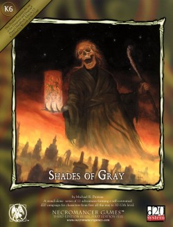 Shades of Grey (K6) (d20) Universell 🔗 Kenzer & Company Michael R. Proteau Universell Abenteuer 🔗 Abenteuer Hardcover¸ PDF 176 Seiten EnglischEnglish 23 Euro 2006 Als PDF erhältlich bei DrivethruRPGAvailable as PDF at DrivethruRPG Unterstütze Deinen lokalen Spieleladen vor Ort!Support your local dealer 🔗