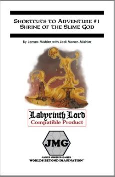 The first Shortcut to Adventure is the Shrine of the Slime-God . Here horrible Chaotic and Evil priests and cultists come to worship the Demon-Prince of Slime. Here they store their treasures when they return home and hide in obscurity among their Lawful¸ Goodly neighbors... but they do not leave these treasures unguarded!
