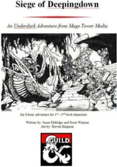 Zooryn stumbled along the pitch black passage. Even with eyes so accustomed to the dark¸ he could barely discern anything through his good eye¸ his other having been swollen shut for some time. He tripped over unseen terrain¸ barely able to right himself. His stomach lurched¸ hunger pangs almost making him retch. He was battered¸ starved¸ and oh so tired. "Gods below¸ let me find them¸" he muttered¸ thinking idly that his gods were unlikely to hear him¸ so far was he from his native lands. He paused¸ bowing to catch his breath. He could just stop¸ lie down for a moment¸ get some rest… A flicker of something caused him to jerk his head upright. Was it light? Another trick of his overworked mind? He waited¸ his eye straining to see something¸ anything. Then he heard them. They were definitely voices¸ quiet and indistinct¸ yes¸ but voices. He couldn't place direction or distance¸ the sounds echoing madly around him. Was it Dwarvish? He leaned his head around¸ ears frantically seeking patterns in the unknown speech. He tried to move closer and fell. This time¸ as ha tried to rise¸ he realized that he had no strength. The unseen voices got louder¸ and with his last reserves of will¸ Zooryn croaked out the one word of Dwarvish he'd been taught before he had been sent. "Help." Then the deeper blackness claimed him. An 8-hour adventure for 1 st - 3 rd level characters Written by: Jason Eldridge and Scott Waisner Art by: Steven Simpson