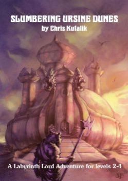 "Slumbering Ursine Dunes' strong points are well-realised factions¸ two good dungeons¸ evocative imagery and trappings¸ and its pointcrawl layout¸ where instead of a hex or a free-form map¸ the set-up layouts out the various points of interest that PCs are likely to encounter along the way." - John Bell¸ The Retired Adventurer