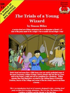 SM12 The Trials of a Young Wizard was designed with AD&D in mind but set in the OSRIC ruleset. This is the latest dungeon designed as excellent value for money and an easy fit to any fantasy role-playing campaign. However¸ The Trials of a Young Wizard is primarily aimed at the game setting the Free City of Dunromin and the Land of the Young on theastonishing World of Barnaynia.