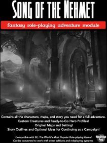 This is a fan-made fantasy adventure module for 5th edition or other d20-based roleplaying system. It contains 7 pre-made characters with unique skills and abilities¸ 7 custom bad guys with evil beasts of their own¸ the setting and storyline¸ plus all of the maps and floor plans of major buildings you will need to carry out all 3 acts of the story. It offers storyline arcs and options in exhaustive detail! It also has additional story ideas and maps if you want to stretch this adventure into a campaign.