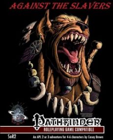 Rescue the Slaves! In the slums of Beggartown outside of Riverton¸ people frequently go missing¸ never to be heard from again. However¸ this time¸ a halfling family has been kidnapped and someone powerful wants them rescued. Thanks to your connections¸ you have been tasked with locating the kidnappers' hideout¸ infiltrating it¸ and rescuing the missing family. Problem is¸ everyone is pretty sure that gnolls are to blame... Against the Slavers is the second part in the Shadows of Riverton adventure path and is designed to be played during the course of two or three four-hour sessions. The scenario can also be run as a standalone adventure in your sandbox campaign as it can easily be adapted for use with any campaign setting. Against the Slavers is an APL 2 or 3 module designed for four to six characters and uses the medium XP advancement track. Successful completion of the adventure will take 2nd-level characters to 3rd level. This scenario also includes a settlement stat block for the large town of Beggartown as well as information about the town's places of interest and notable NPCs. In this adventure¸ you can recruit mercenaries to help you rescue the slaves¸ become embroiled in local gang politics¸ and pit your characters against a wide variety of opponents in gladiatorial combats to the death in the infamous Chapel of Slaughter-winning fame and (small) fortune. This adventure also contains a new spell¸ as well as new drawbacks and magic items¸ and more advanced gnolls than you can shake a stick at (not recommended¸ gnolls hate that). This adventure is suitable for use with the Pathfinder Roleplaying Game and the 3.5 edition of the world's oldest fantasy roleplaying game. The Open Game License can be found on page 53 of this product.