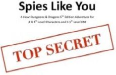 Mission Impossible meets D&D. It's your first mission as royal spies¸ and you will have to be crafty¸ sneaky¸ and clever to get through it. It is up to you to use your imagination to come up with the craziest ideas that might just work and improvise your way through dangers you definitely weren't trained for. This 4 hour adventure is designed for both first-time players and first-time Dungeon Masters. It includes the adventure itself¸ background¸ basic tips on starting¸ several maps¸ monster stat blocks¸ and 6 1st-level pre-generated characters.