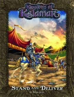 Stand and Deliver is a first level adventure set in the Kingdoms of Kalamar® campaign setting. This adventure is designed for use with the revised (3.5) edition of the rules with key differences from the previous editions called out so it can be more easily used with either edition. The player characters will become entangled in a tragic tale of forbidden love among different social classes and soon find themselves embroiled in a challenging contest of skill to decide the fate of people's lives. They will find themselves investigating the haunted ruins of Guvlven looking for clues to the unexplained disappearance of the original settlers and soldiers centuries ago. While in the wilderness they will meet the mysterious Mashony tribe and learn of their dire need for assistance in sanctifying a sacred temple that has been defiled. But can they be trusted? For the tomb holds many secrets¸ riddles and dangers of which not even they are aware.