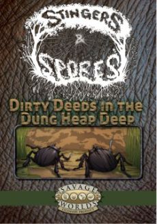 Dirty Deeds in the Dung Heap Deep is a one-shot adventure for Stingers & Spores ¸ which brings heroes to a corner of the Insect Kingdoms where elephants still walk. In this tale of grand theft manure¸ precious dung is a hot (and steaming) commodity.
