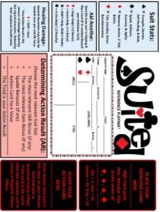 These Static PDFs are quick reference playmat s upplements for the Suited game system. Each playmat contains concise summaries for core rules and game mechanics that players need to play a game of Suited. The rules for Suited are available for free in Suited: Free Sample Edition! ¸ a tabletop rpg quickstart for the Suited game system now on DriveThruRPG. Suited is an adaptable game system that can be used to play any genre you want with as little as a single deck of playing cards. Rules-light with only a moderate amount of crunch¸ Suited is easy for new players to pick up and learn¸ while having just enough rules for those people that enjoy having mechanics to play with. Each of the genre playset comes with tables for random character creation and world generation¸ as well as a quickstart adventure fill-in-the-blank forms for getting the rough outlines of a one shot game designed.