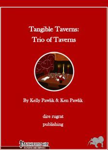 Tangible Taverns: Trio of Taverns brings you three smaller scale taverns each with rumour and event tables¸ a tavern map¸ and a description of frequent faces about the establishment (which include names¸ physical features and personalities for some tavern employees and patrons).
