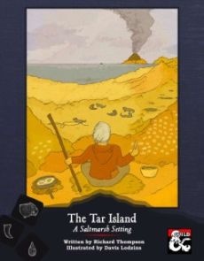 Some islands are exotic. Some islands are downright wonderful¸ filled with fruitful bounty and natural beauty alike. Some islands are home to fire-breathing lizards ¸ man-eating sulphuric oozes and regular¸ groundbreaking earthquakes - surely¸ nothing of consequence for those interested in mostly honest work and almost assured profit. Welcome to the Tar Island ! Tar Island is a gritty setting for your expeditions in Saltmarsh ¸ or any other island themed setting. Sure¸ there's money in transporting alluring spices¸ colourful fruit and unseen songbirds¸ but someone needs to harvest the pitch for the ships. Join the expedition to Tar Island ¸ and get down and dirty in this atmospheric frontier setting¸ featuring: Two new creatures! Sear your adventurers with the Yellow-Skinned Monitor Lizard's fire breath¸ or force them to witness the unfathomable smell of the Sulphuric Ooze! Three adventure hooks that bring your players to an island few dare to visit A cast of NPC's ¸ including a ruthless entrepreneur¸ a shipwrecked hermit and a slumbering dragon¸ whose dreams affect the island in a myriad of ways. Plenty of locations in one hotbed of an adventure - explore the lizard breeding grounds¸ hot springs¸ goblin villages and the frontier outpost of miserable merchants. Rules for earthquakes As always¸ we've added hand-drawn illustrations and the island map
