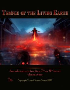 The Temple of the Living Earth is a 3-5 session (or about 12-20 hours¸ depending on roleplay and combat duration) adventure for 5 7th- or 8th-level characters that takes the adventurers to a volcanic temple where they must put a stop to a powerful necromancer monk's plans to corrupt the spirit of the volcano and create an army of magma core undead.