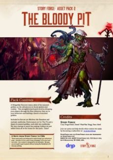 A Hobgoblin Sorcerer tests a slew of his mutated goblins on the adventurers in brutal gladiatorial combat. " The second asset pack from StoryForge. Included in this set are Mechvor the Boneless and multiple statblocks¸ Environment art for The Pit and a litany of mutated goblins ¸ each with two statblocks. StoryForge is releasing monthly packs on our Drip page. Subscribe for a discount and access to our Discord. Our other Asset Packs: 001 - The Temple of Bounty 003 - The Forest of Rot