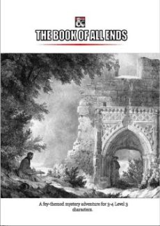 The Book of All Ends is an adventure for 3-4 3rd-level characters¸ and can take those characters to 4th level. It can be run in 4 hours when streamlined¸ but can easily last several 4-hour sessions if you allow the characters to explore all locations and avenues of investigation. The adventure can be adapted to fit into existing campaigns¸ with the village of Evergrove relocated to any rural location near a large forest. It has themes of fey mischief and murder¸ with the players tasked with investigating three deaths in the town and rescuing the Mayor's son from the clutches of a member of the Unseelie Court. This will require a dangerous journey into a fey realm¸ where the Half-Horned Duke resides.