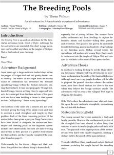The Breeding Pools¸ a five-page adventure add-on for Island of Blight¸ a multi-system Kickstarter adventure book.