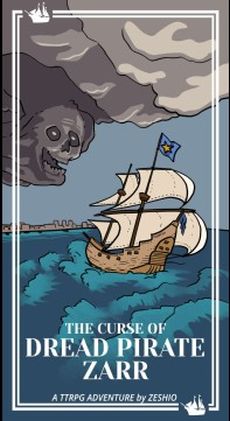 About This Adventure The Curse of Dread Pirate Zarr is a short adventure made for table top role playing games (think DnD¸ Pathfinder¸ & Troika). The Elevator Pitch This adventure concerns the strange events happening in Brinewater¸ a cool water port on one of the more popular merchant routes through the region. For the past couple of months¸ merchant ships sailing into the area have been harassed and tricked by a mysterious force. The city itself has experienced strange bouts of heavy fog seeping into sections of the city¸ and frightened denizens speak of seeing ominous forms and shadows playing across the mist. The party has just arrived in the city of Brinewater¸ but are they willing to uncover the truth behind the Curse of Dread Pirate Zarr ? System Agnostic The adventure is flexible to any ttrpg system and to any level adventuring party. Why is that? Because the battles are less about enemy stats and more about how they act. This gives you the flexibility to change the difficulty as needed. This adventure PDF is created with phones in mind. That means it's created in 1080x1920 vertical format¸ and it supports interactive elements/bookmarking. Tired of having to flip through a PDF that's not made for your phone? Problem solved. If there's enough support I will also offer a traditional PDF in the future.