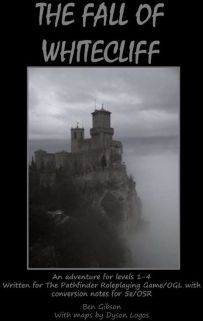 The Fall of Whitecliff is a sandbox/regional adventure written for a new group of players¸ designed to take them from nothing-but-the-clothes-on-their-back fresh level 1s all the way up to level 4 by the end of the adventure. The adventure takes place within a small and mountainous region along the coast that can be placed almost anywhere in your campaign world of choice¸ and can be readily adapted to most common fantasy RPG systems. It uses the one-page dungeon format to deliever tight¸ punchy sessions focused entirely for the game master's use at the table.