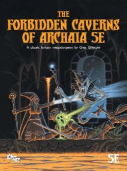 THe Forbidden Caverns of Archaia (FCoA) is a 296-page classic old school megadungeon for use with the Fifth Edition of the World's Most Popular role-playing games. THe pages of Forbidden Caverns are crammed full with new material¸ maps¸ amazing art (including special surprizes by former TSR artists)¸ as well as an amazing colour cover art by Ex-TSR artist Erol Otus that matches Barrowmaze Complete 5E as a sister-book.