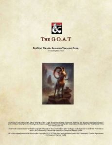 Ever wanted to have a Goat as your Sidekick beast? Not playing a Hunter? Have a Nice DM who wants to come up with something? Look no Further because you found what you are looking for. The G.O.A.T The Goat Owners Advanced Training Guide This Guide tells you how to find¸ Befriend¸ Train and Adventure together with your Goat buddy. Perfect Use: Any DM who is running a single player campaign and wants to help their player along ( new playr or veteran). Have the Goat take orders / requests form your player. Combat done by your player and traveling decided by your player. Any roleplay and answering any questions the goat is asked can be done by the DM.