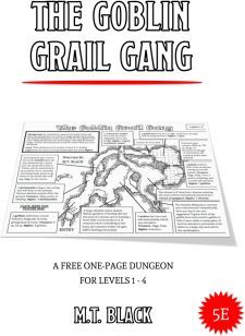 The Goblin Grail Gang is a free one-page 5e adventure for characters of level 1-4.