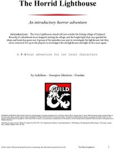 The Horrid Lighthouse is an introductory 4-6 hour adventure with horror elements for a party of 5 first level characters. The Ivory Lighthouse stands tall just outside the fishing village of Solspool. Recently its inhabitants have stopped visiting the village and the bright light that once guided the ships and boats has gone out. A group of five paladins was sent to investigate the lighthouse¸ but they never returned. It's up to the players to investigate the old lighthouse and light its fire once again. <o:p></o:p/span/p/ende>