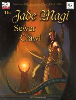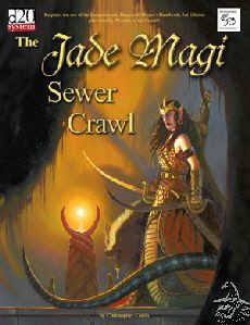 In the province of Ling¸ Lord Yu has a problem: his mother. She's pompous and elitist and undercuts his actions by controlling the province guard. More recently¸ however¸ other problems started. Huge rats began appearing in alleyways. A six-foot weasel was found in a hen house. Worst of all¸ an overpowering stench poured out from the drainage system. Lord Yu's guard¸ who have a touch of the lord's mother's ways¸ have been too 'busy' to approach the task of finding out what is going on. Enter the adventurers¸ who¸ if they take the promises of cash and glory¸ walk into one of the truly messy situations of their careers. The Jade Magi Sewer Crawl is a d20 System adventure suitable for characters of 4th-6th level.