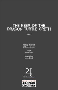 While waiting for Bryce's review on The Keep of the Dragon Turtle Greth Take 1 I did a deep edit¸ pared downed the Time Unit Tracker¸ rearranged the layout¸ and added the Iguanamen queen Iss'thi'qua¸ who wears the Crown of Dragon Turtle Control that controls Greth. If the party can kill Iss'thi'qua¸ they can get the crown and gain control of Greth! The net result is The Keep of the Dragon Turtle Greth Take 2.