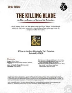 The Killing Blade is legal for D&D Adventurers League play and part of the Embers of the Last War storyline! Adventure Code: DDAL-ELW10.