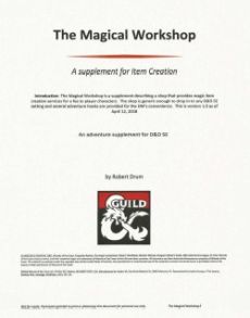The Magical Workshop is a supplement describing a shop that provides magic item creation services for a fee to player characters. The shop is generic enough to drop in to any D&D 5E setting and several adventure hooks are provided for the DM's convenience. This is version 1.0 as of April 12¸ 2018